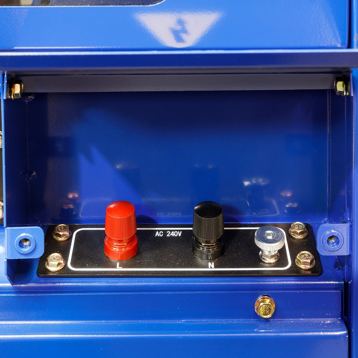 The Bison Super Silent Whisper is a 1500rpm water-cooled, three-cylinder, 1.2L, 15kVA diesel generator, producing two 240V 30A output. Complete with remote start/stop key fob, this generator is mounted in an acoustic cabinet; resulting in noise reduction, with locking castors.