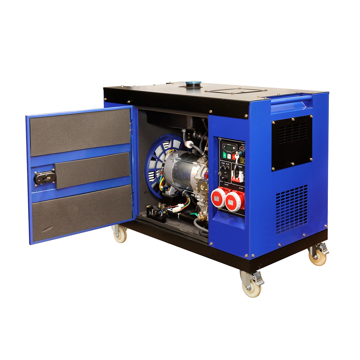 The Bison Whisper MKII is a portable, air-cooled, three-cylinder, 680cc, 10kVA diesel generator, producing 415V three-phase 25A output. Complete with remote start/stop key fob, this generator is mounted in an acoustic cabinet; resulting in noise reduction, approximately 20db lower than the Bison Mark II Generator.