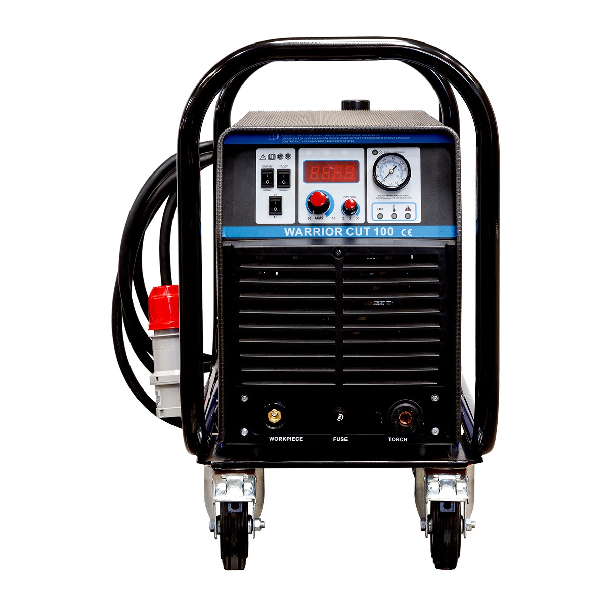 The Warrior Cut 100 Three-Phase Plasma Cutter is a 100 Amp portable inverter plasma cutting system with a 415V three-phase input. Its variable output makes it ideal for cutting metals up to 30mm thickness.